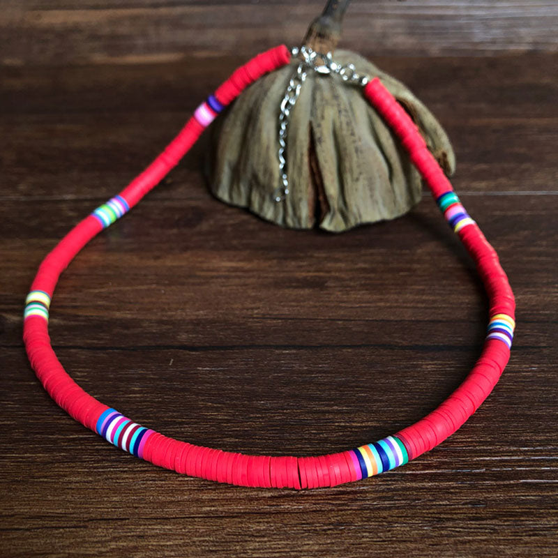 Multicolor Polymer Clay Slice Beachy Clavicle Chain