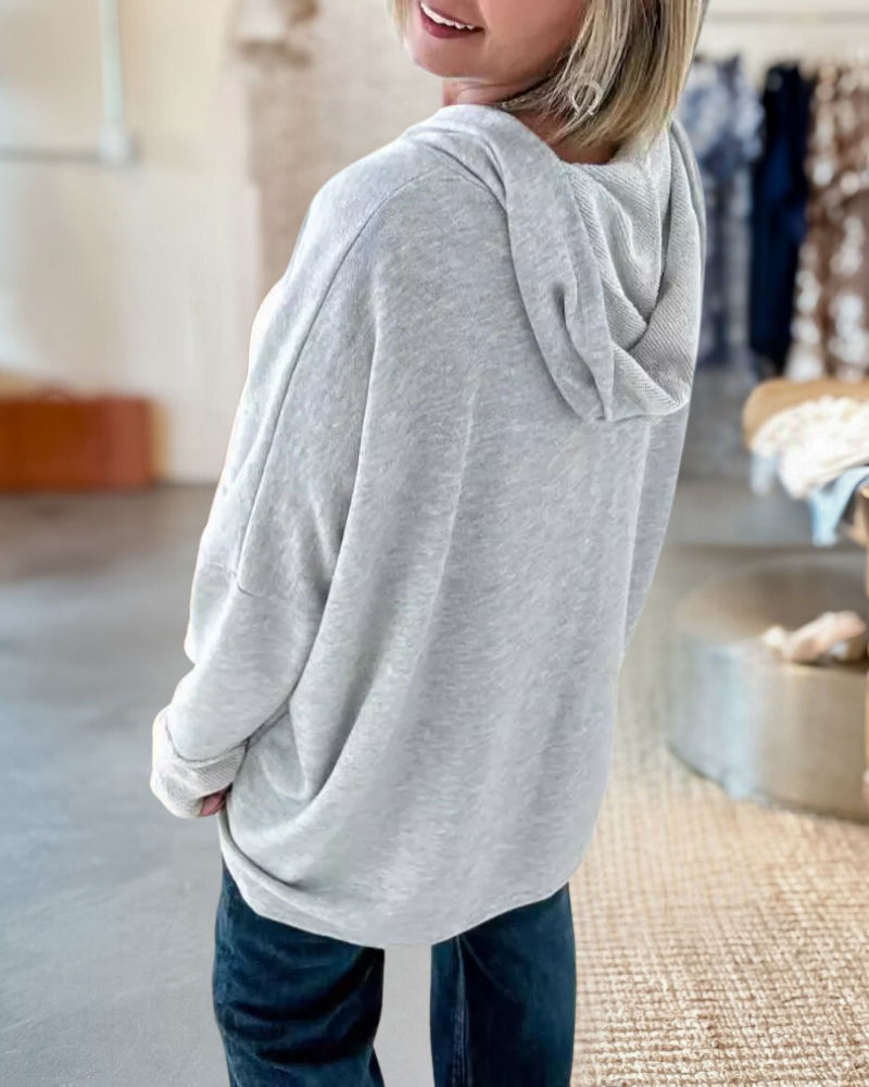 Splicing Solid Button Neck Long Sleeve Hoodie